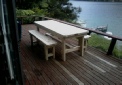 Small deck off the lounge Excellent wood burner and firewood available- TV has no reception, only used for watching DVDs (please supply your own DVDs) Wood burner, TV, DVD player, Stereo/CD player, fridge/freezer, spare fridge, chub/shower only, board games, outdoor furniture |