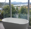 Deck off the lounge to drink your morning coffee in the sun Extensive floor to ceiling glass panels throughout to maximise the views Top level is an open plan kitchen, dining and lounge plus master bedroom with en suite Bottom level is 2 bedrooms with a shared bathroom Cable TV, free Wifi, full kitchen, coffee maker, underfloor heating, washing machine, dryer, ironing board, |