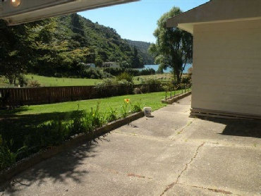 A fully fenced and flat section with plenty of space for the kids to play The surrounding area is also large and flat with neighbouring properties Large sandy beach, great for swimming and for water sports Large shared jetty for loading and unloading only Own mooring A dinghy and 2 kayaks available as well as a life jacket All day sun (8am - Views out towards the northern entrance of the Queen Charlotte Sound |